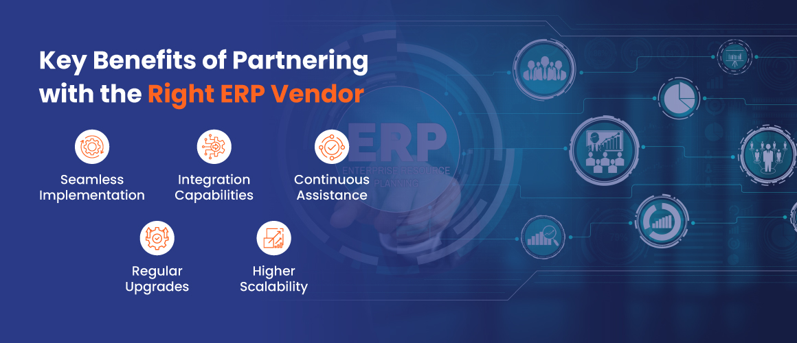The right ERP partner plays a vital role in deploying a tailored ERP and ensures its success in terms of higher ROI. Some major business benefits of partnering with the most suitable ERP vendor include-